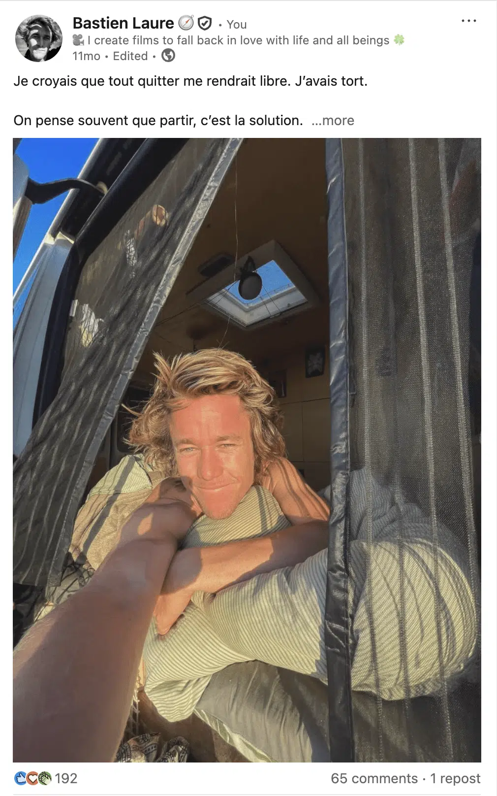 "Bastien est très talentueux, il apporte beaucoup par sa créativité, son authenticité, son regard et ses précieux conseils. Il sait faire ressortir les émotions avec brio. Il est très à l’écoute, s’adapte à chaque situation avec un talent de maître. Un vrai bonheur de travailler avec lui. Ne chercher pas plus loin, c’est lui dont vous avez besoin" Léna Mathurin - Fondatrice de Terre des pépites
